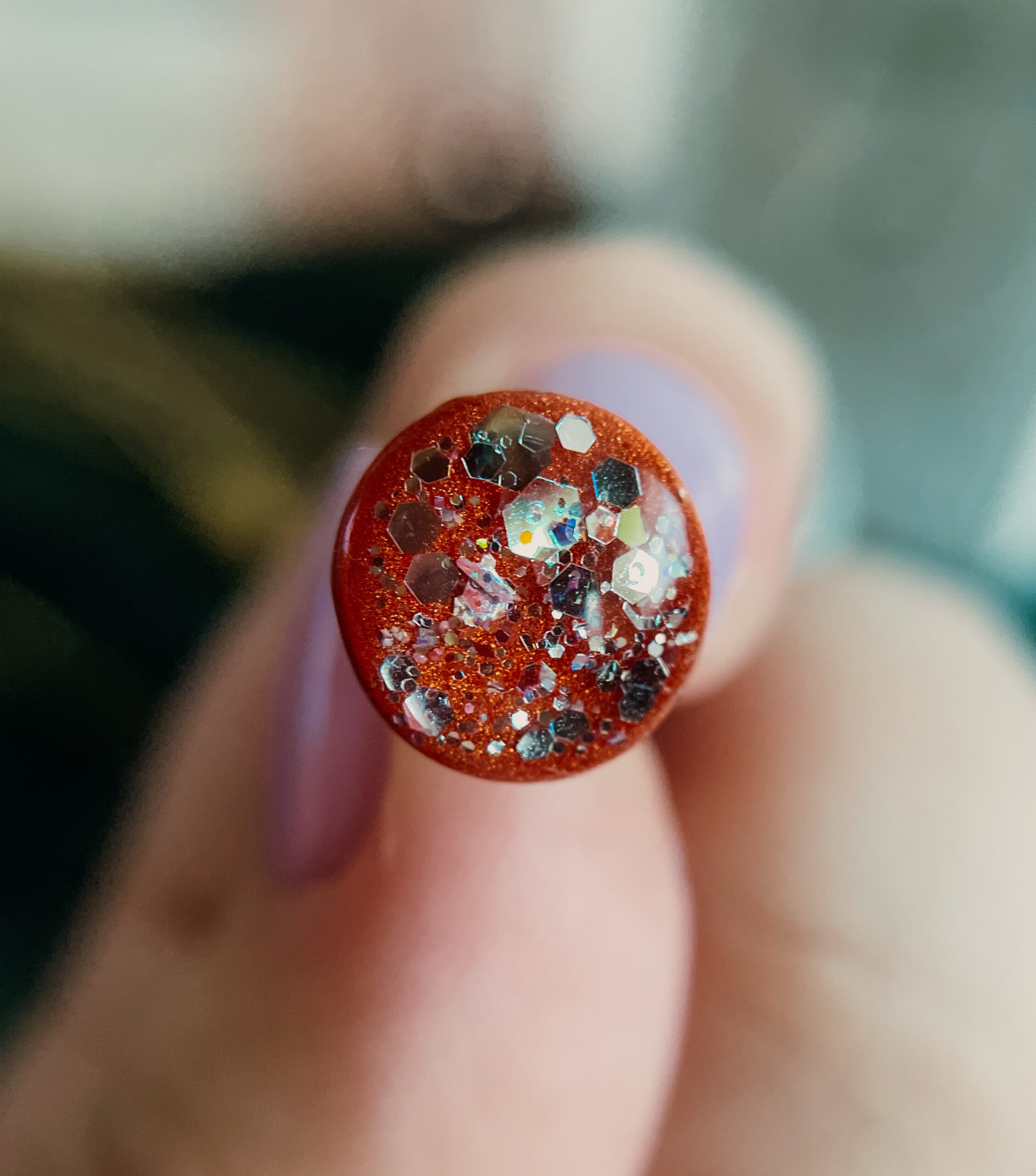 PS! Tegemist on käsitööehtega. Kui disaini on loodud mitu sarnast (põhivärv ja tehnika on sama) siis iga täpp, glitter, muster ei ole identselt samas kohas nagu tootefotol. Lisaks võib mõningane värvierinevus tuleneda etinevatest kuvaritest, ekraanisätetest.