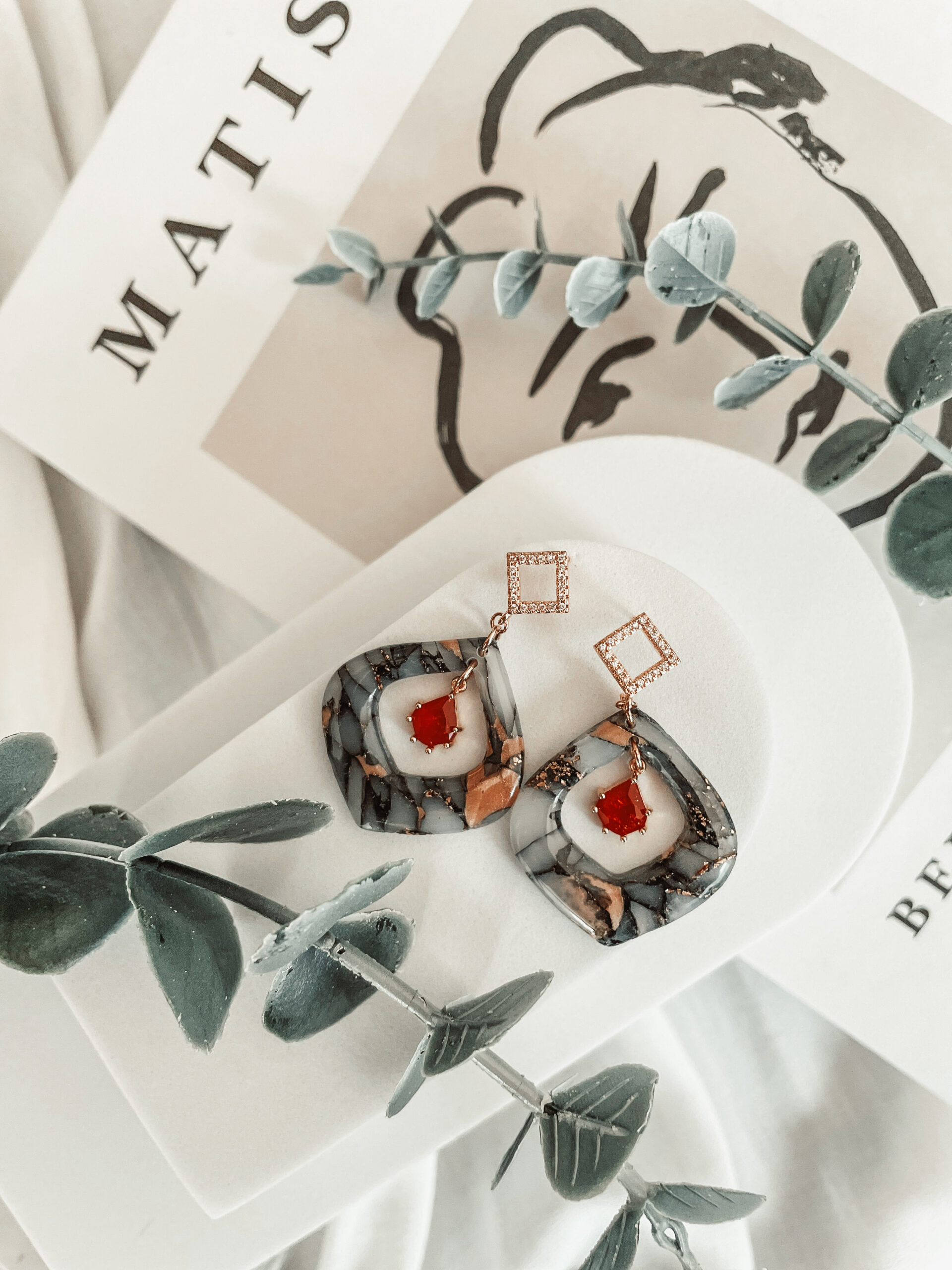Iga kõrvarõngapaar on käsitsi voolitud, küpsetatud, lihvitud ja olenevalt disainist ka vaiguga kaetud. Polümeersavi on kerge materjal ega koorma kõrva. Sobib kandmiseks nii töö- kui ka pidupäeval!