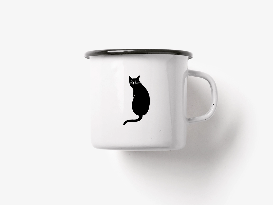 Ühevärviline must trükk emailitud pinnal.